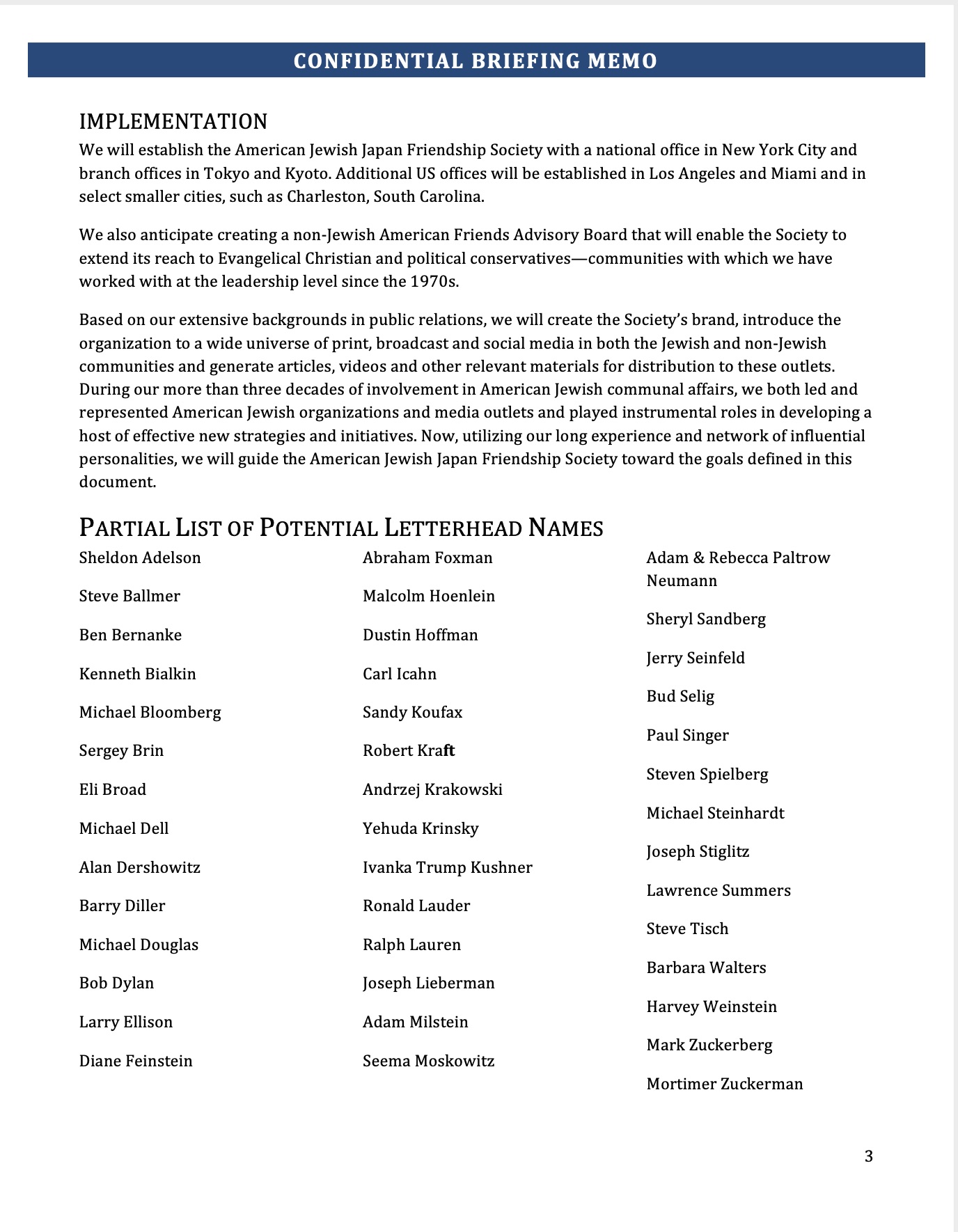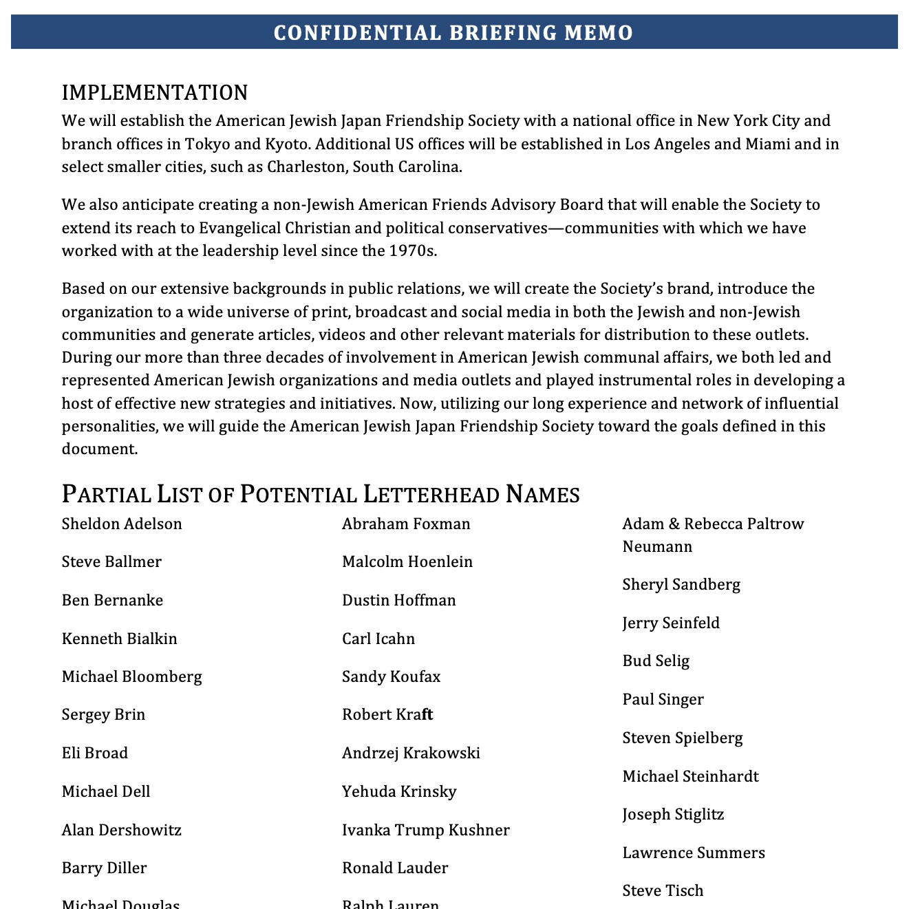 本協会は、在米ユダヤ人のみならず世界のユダヤ人によく知られ、世界で最も重要な民 主主義国家にしてアメリカの最も重要な戦略的同盟国の一つである国家の為に、卓越した影響力のあるアメリカ市民を動員し新たな支援者を創出します。